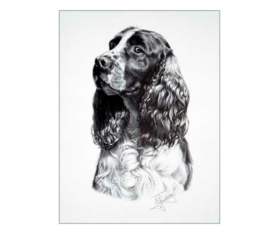 Delight a spaniel dog owner with this open edition dog print, featuring the springer spaniel dog. This dog art, skilfully drawn in graphite pencil by Mike Sibley, captures the loving and loyal nature of the springer spaniel breed. This dog picture is ideal wall art for all dog owners.